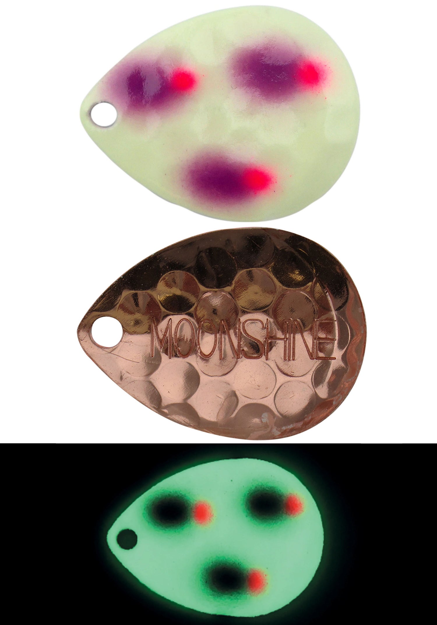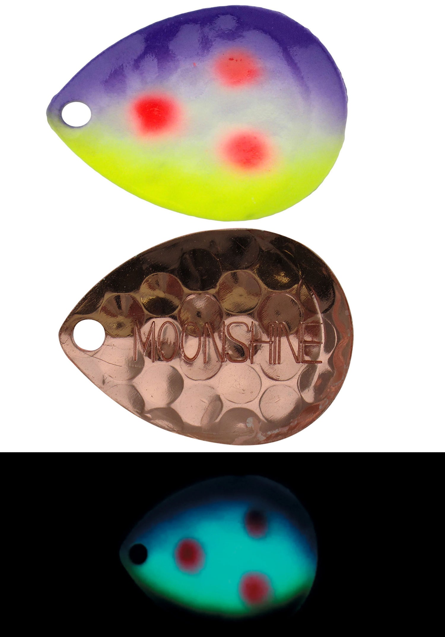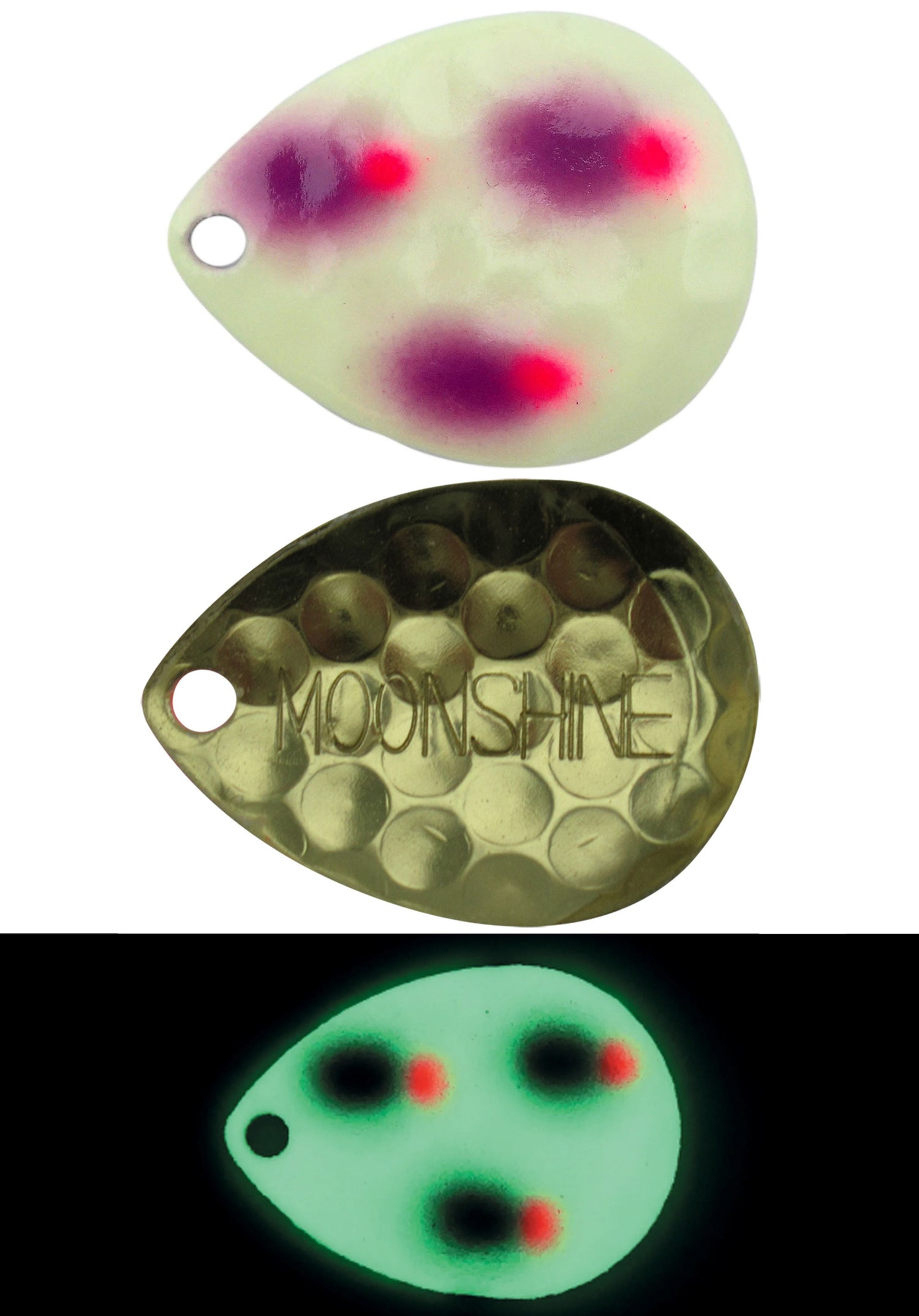 With the Moonshine Lures Spinner Blades, you can add a whole lot of color and flash to your set up! These blades come in an assortment of UV colors that large predators won’t be able to ignore! The pattern pressed into the blades helps to disrupt the water, causing vibrations to enhance the attraction to your lure! The vibrant UV colors make these blades perfect for deeper depths and even night fishing!