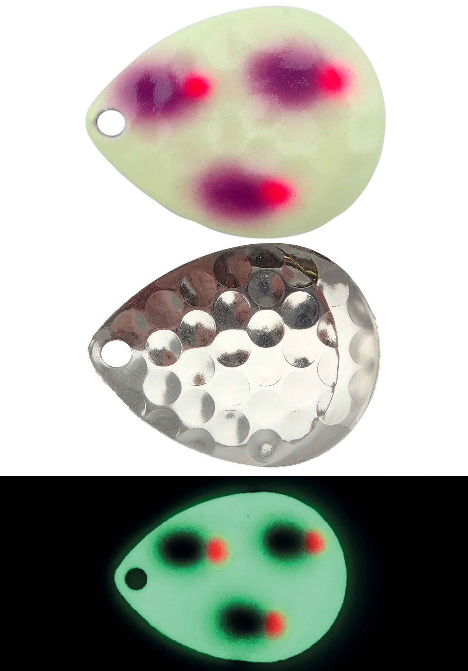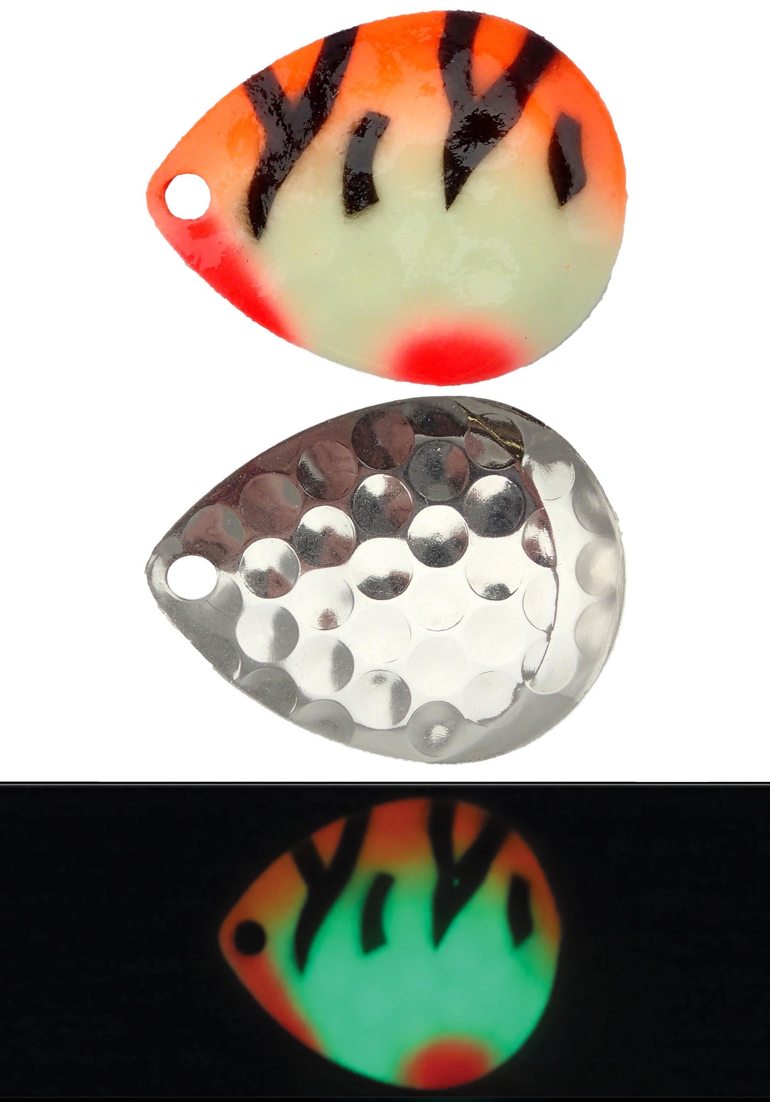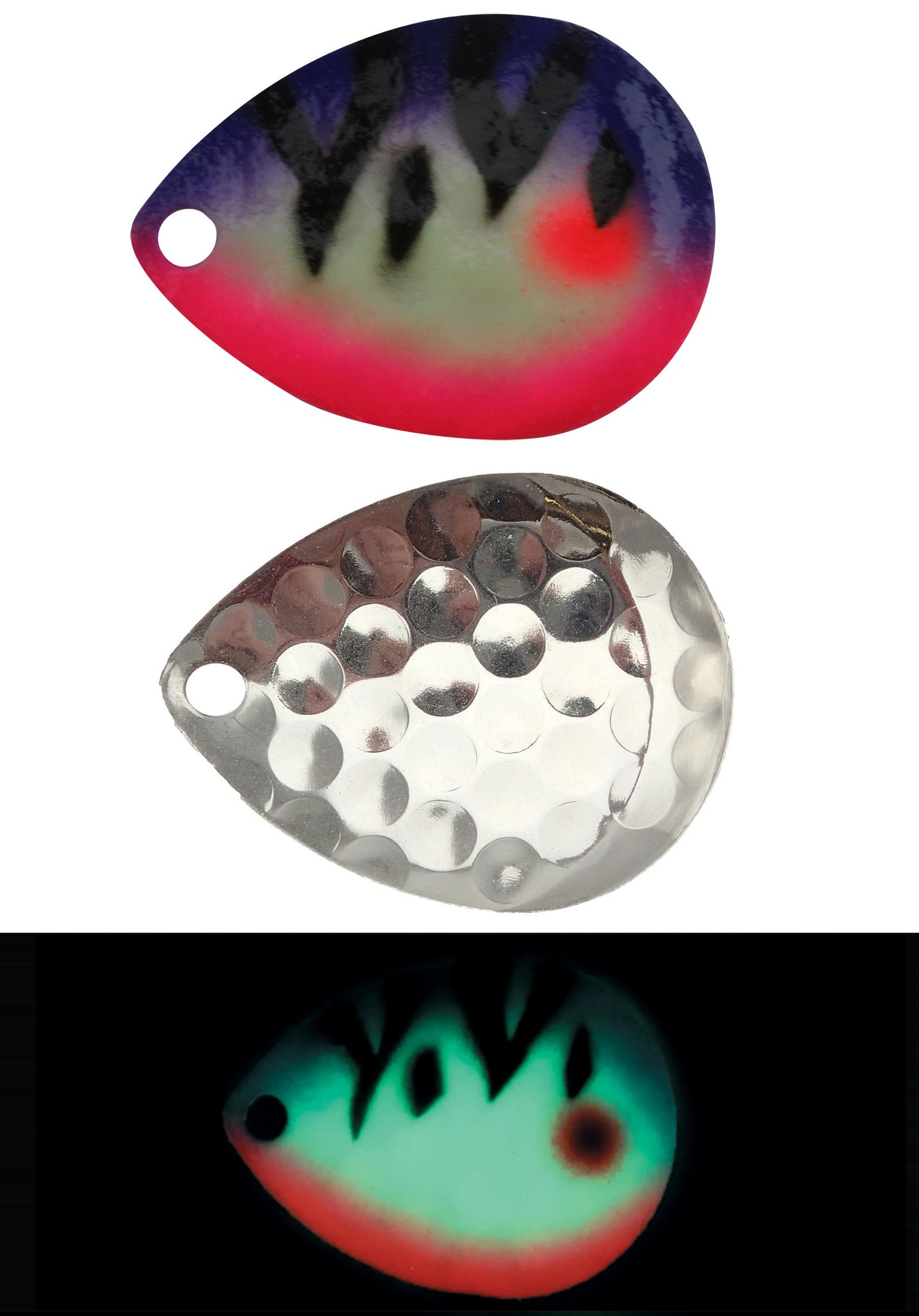 With the Moonshine Lures Spinner Blades, you can add a whole lot of color and flash to your set up! These blades come in an assortment of UV colors that large predators won’t be able to ignore! The pattern pressed into the blades helps to disrupt the water, causing vibrations to enhance the attraction to your lure! The vibrant UV colors make these blades perfect for deeper depths and even night fishing!