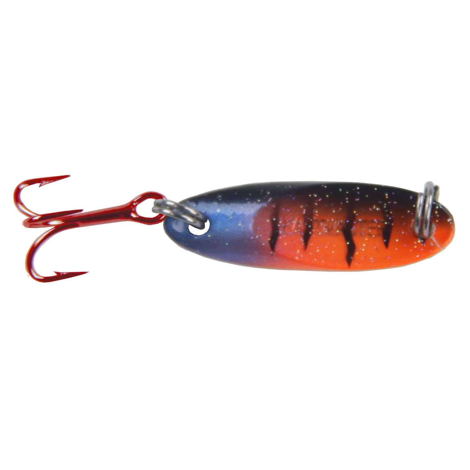 The Kastmaster DR Tungsten spoon packs a heavy punch in a tiny profile. Constructed using high density tungsten, this spoon was designed to sink faster and get you reeling in fish quicker. Falling at a rate double that of its brass counterparts, this spoon maintains the legendary Kastmaster vertical action and bright flash that a standard tungsten ice jig simply cannot deliver. The small profile paired with high density tungsten and Kastmaster action makes this the best panfish spoon ever designed.