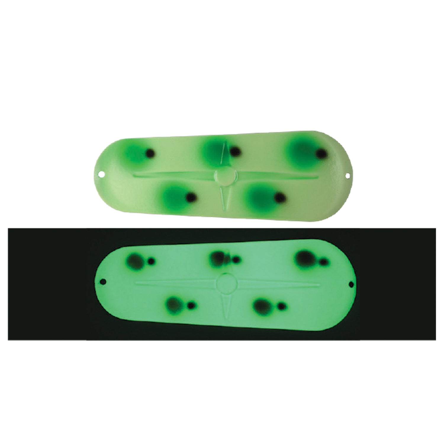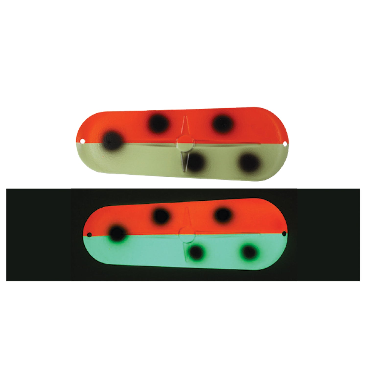 Moonshine Lures is a family owned and operated business. Our goal is to produce high quality Super Glow tackle products. Each lure is hand painted and also inspected to ensure a quality product, including the Moonshine Lures Dodger 8″. Fishing has been a way of life for the family of Moonshine Lures. We have experience tournament fishing & owning a Charter Boat service since 1997. Size # 3 is 8 inches, all have silver back.