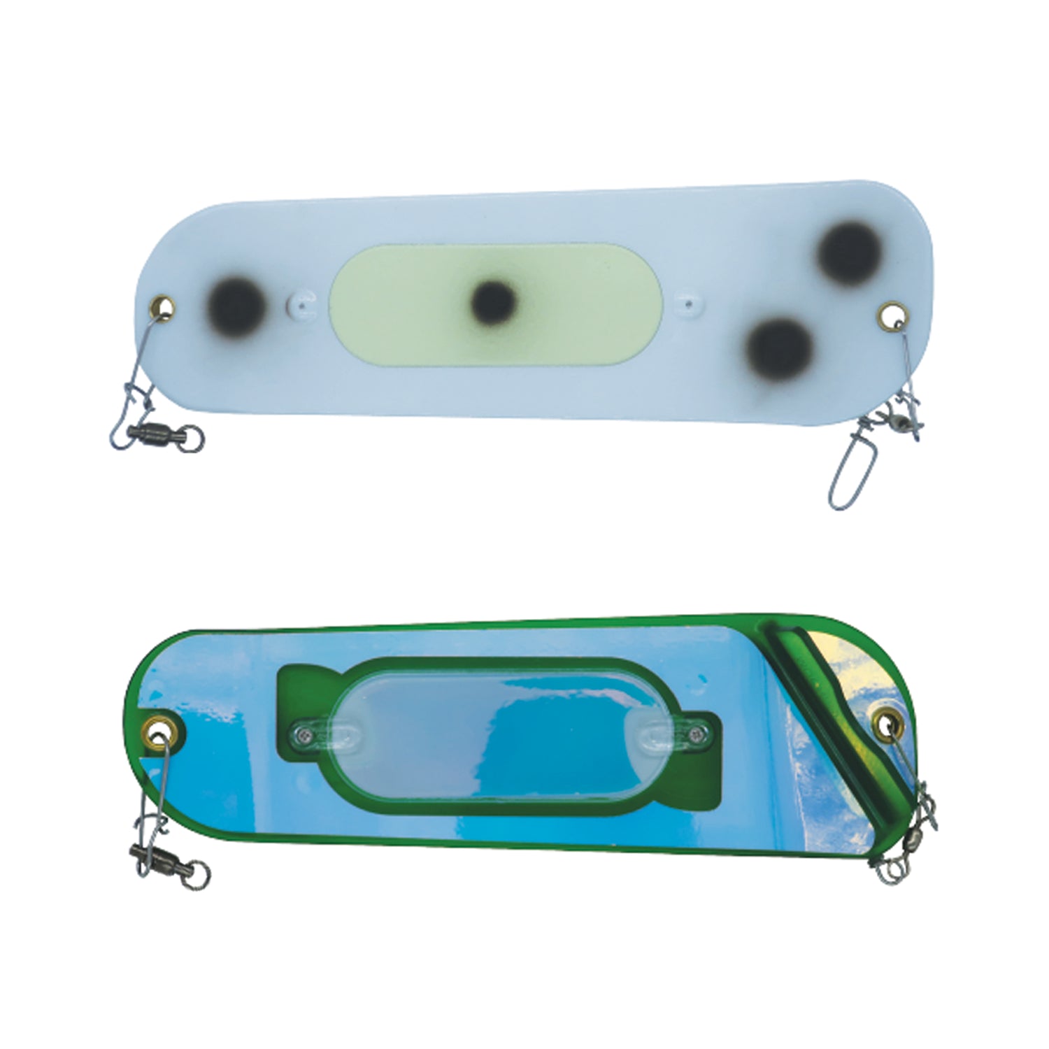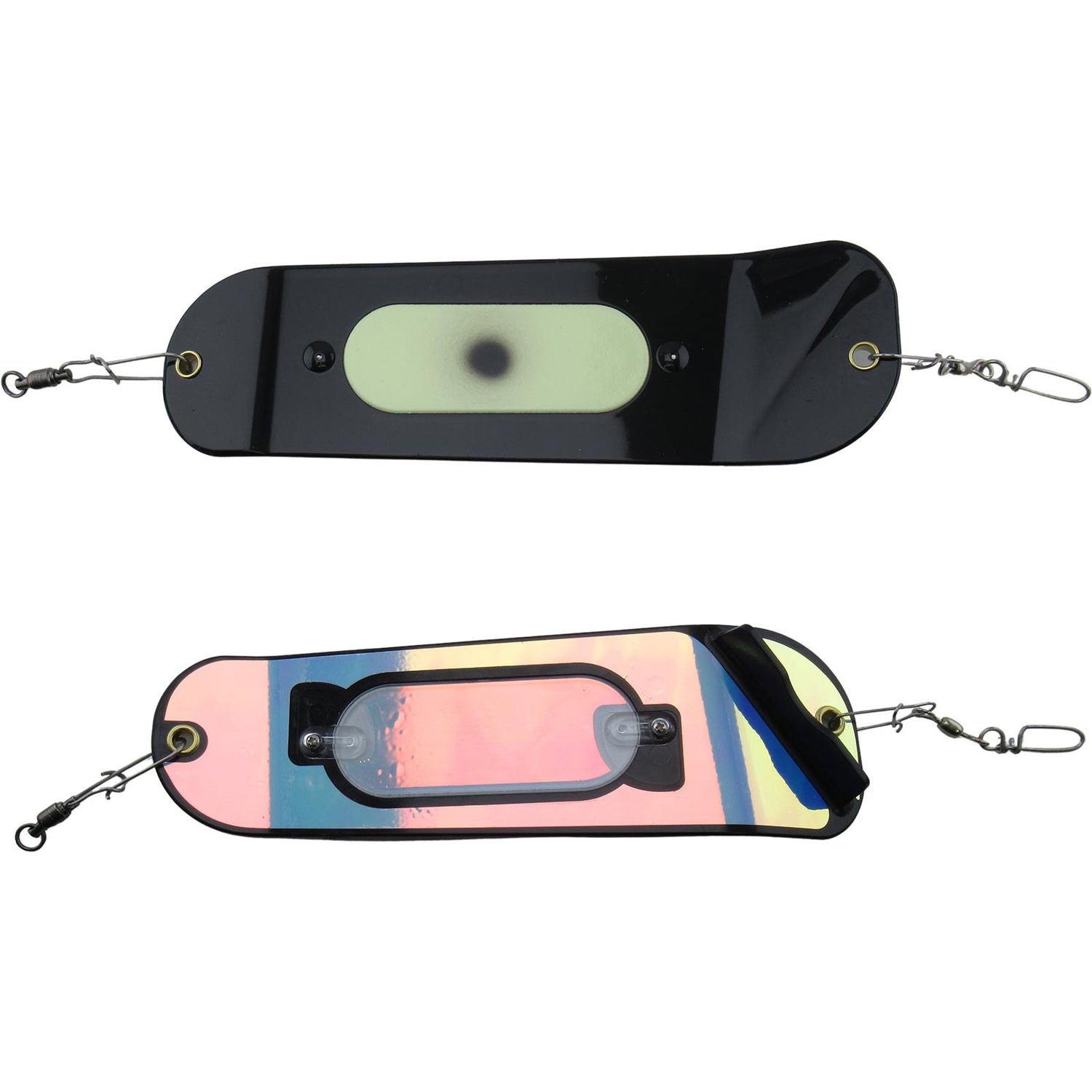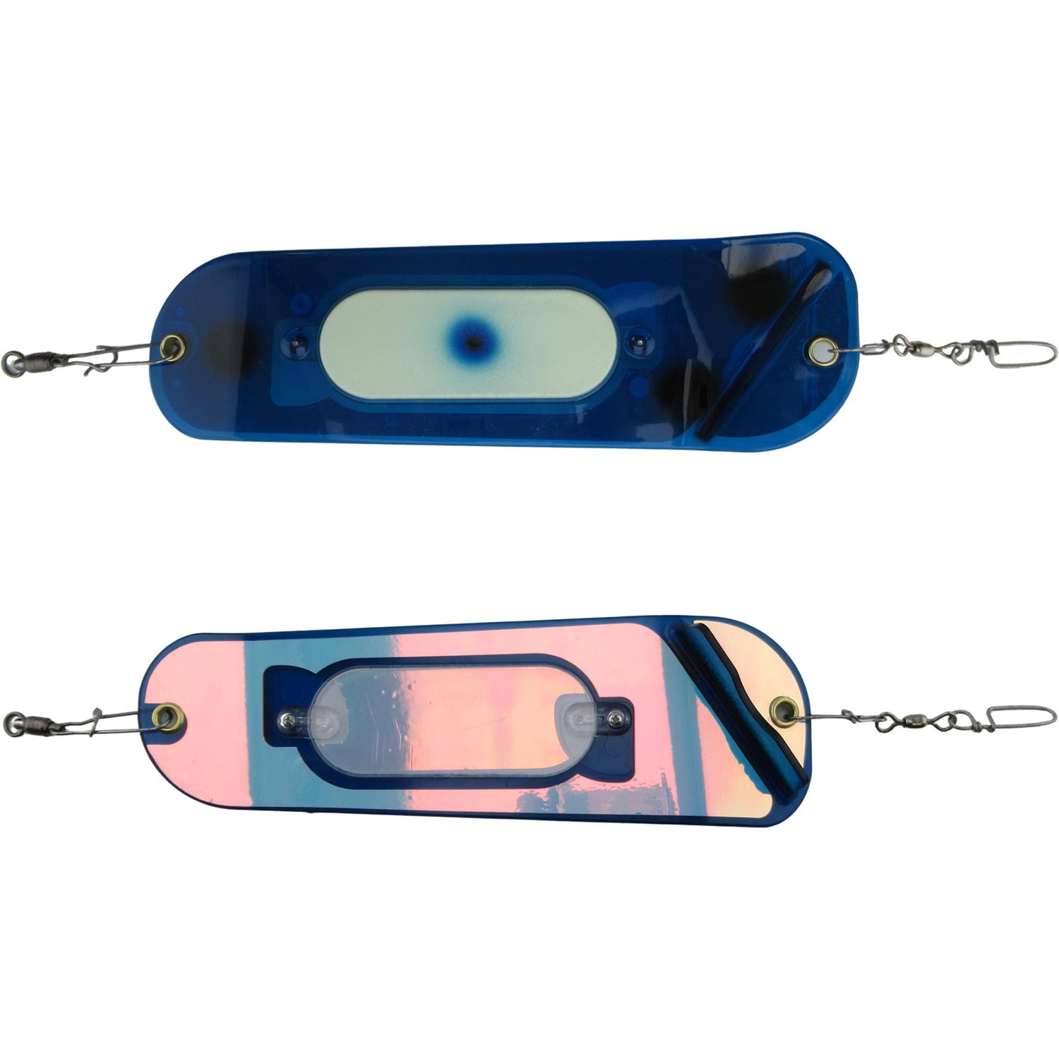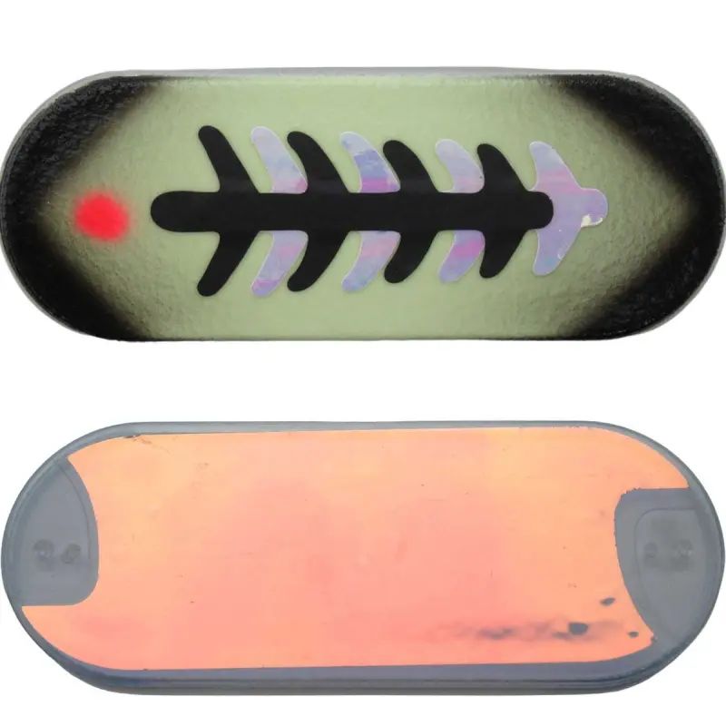This Moonshine Lures Flasher is designed to accept interchangeable Flasher Inserts so that you can match the attractor to the color that salmon and trout are seeking on that particular day. To answer customer requests, Moonshine Lures figured out a way to provide a flasher with the company's own Glow Paint. The patent-pending eight-inch Moonshine Flasher mainframe is available in several colors, and you can obtain each option with two different color stickers on the back.