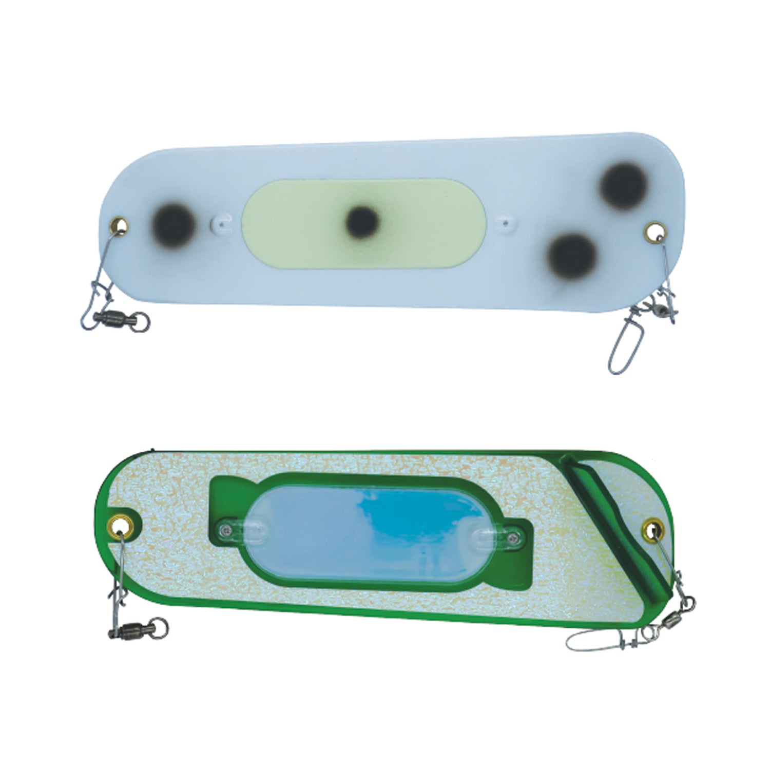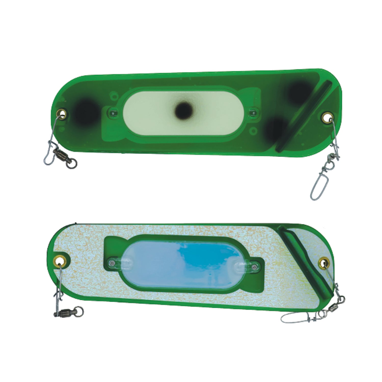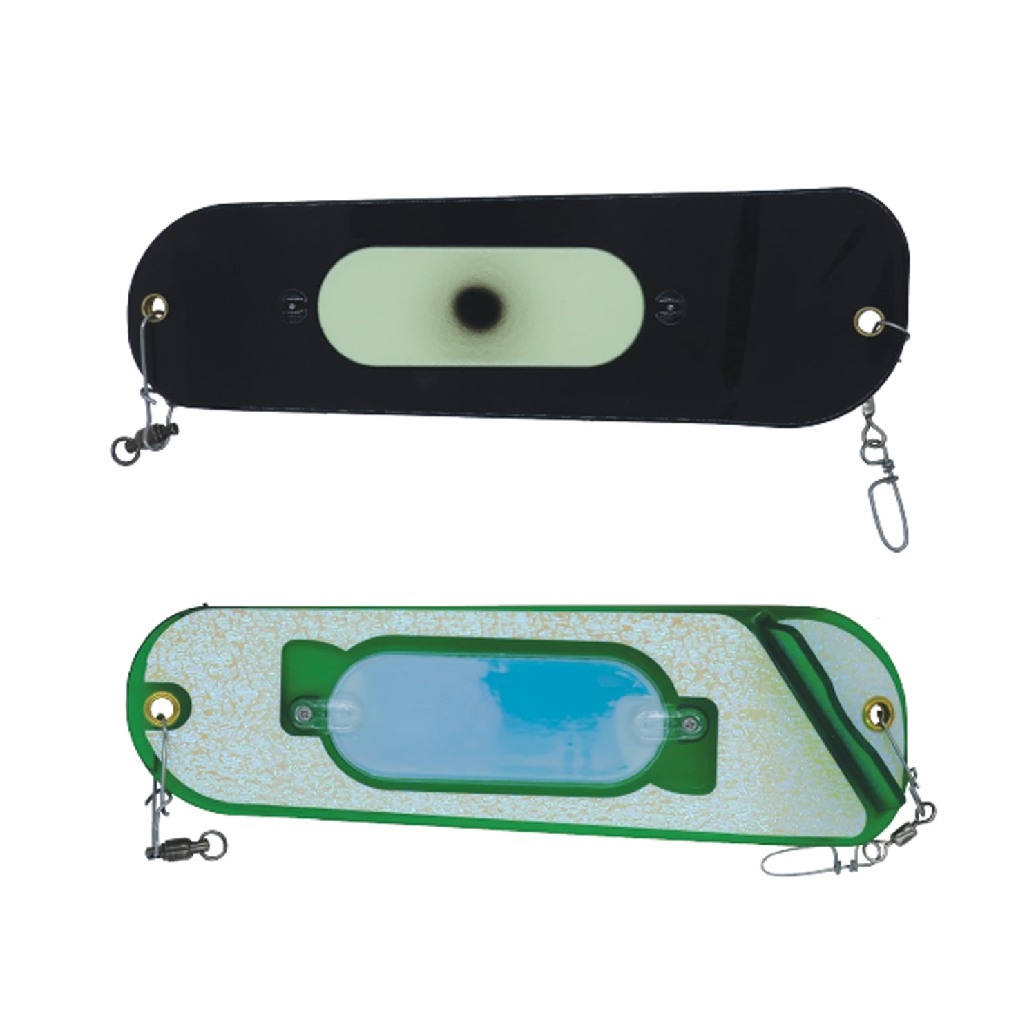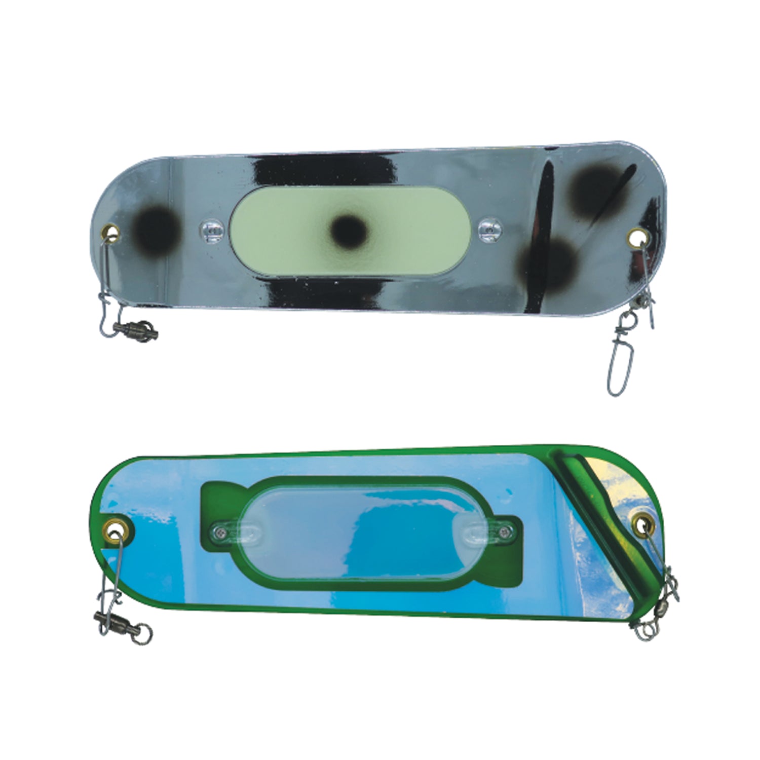 This Moonshine Lures Flasher is designed to accept interchangeable Flasher Inserts so that you can match the attractor to the color that salmon and trout are seeking on that particular day. To answer customer requests, Moonshine Lures figured out a way to provide a flasher with the company's own Glow Paint. The patent-pending eight-inch Moonshine Flasher mainframe is available in several colors, and you can obtain each option with two different color stickers on the back.