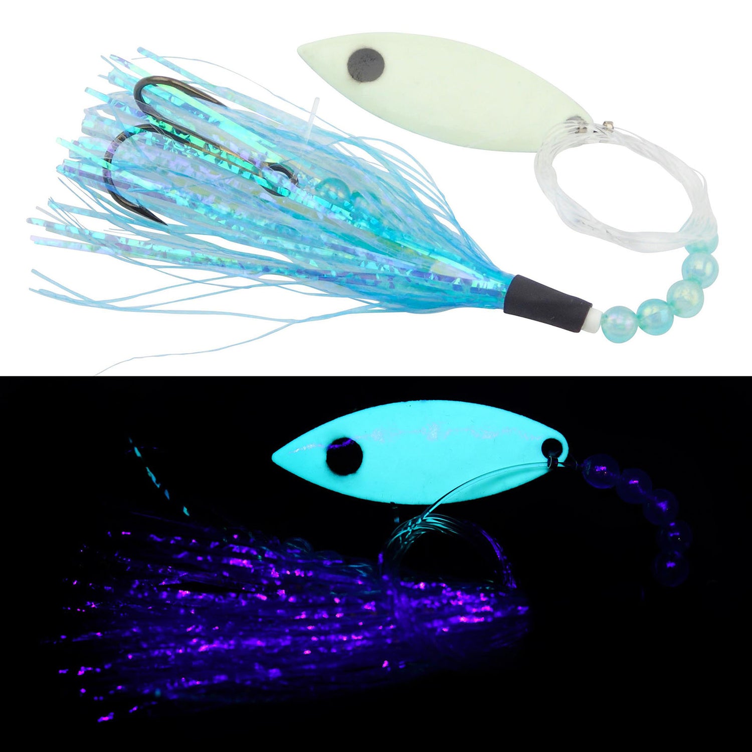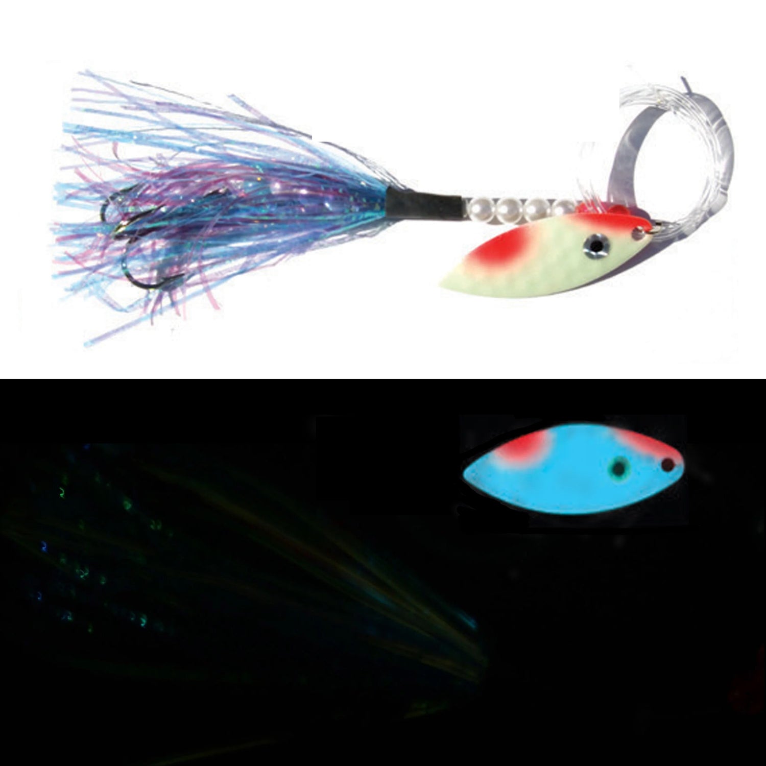 The Moonshine Trolling Fly is produced from a family owned and operated business that offers a high-quality product that won't disappoint. This bright glowing fly will attract trout, salmon, steelhead, and many other species. The Moonshine Trolling Fly is a versatile reflective fly that can be fished in the daytime or at night.