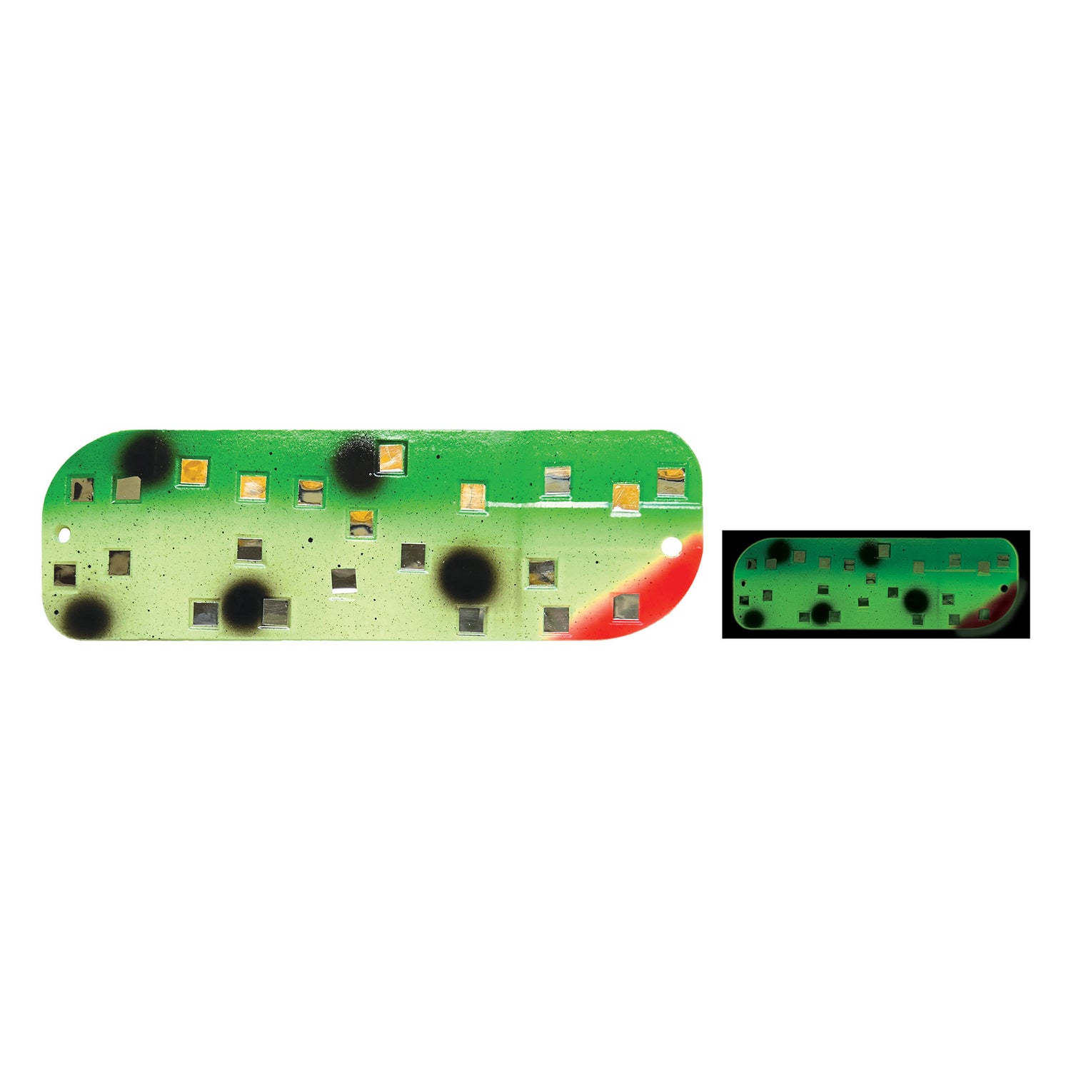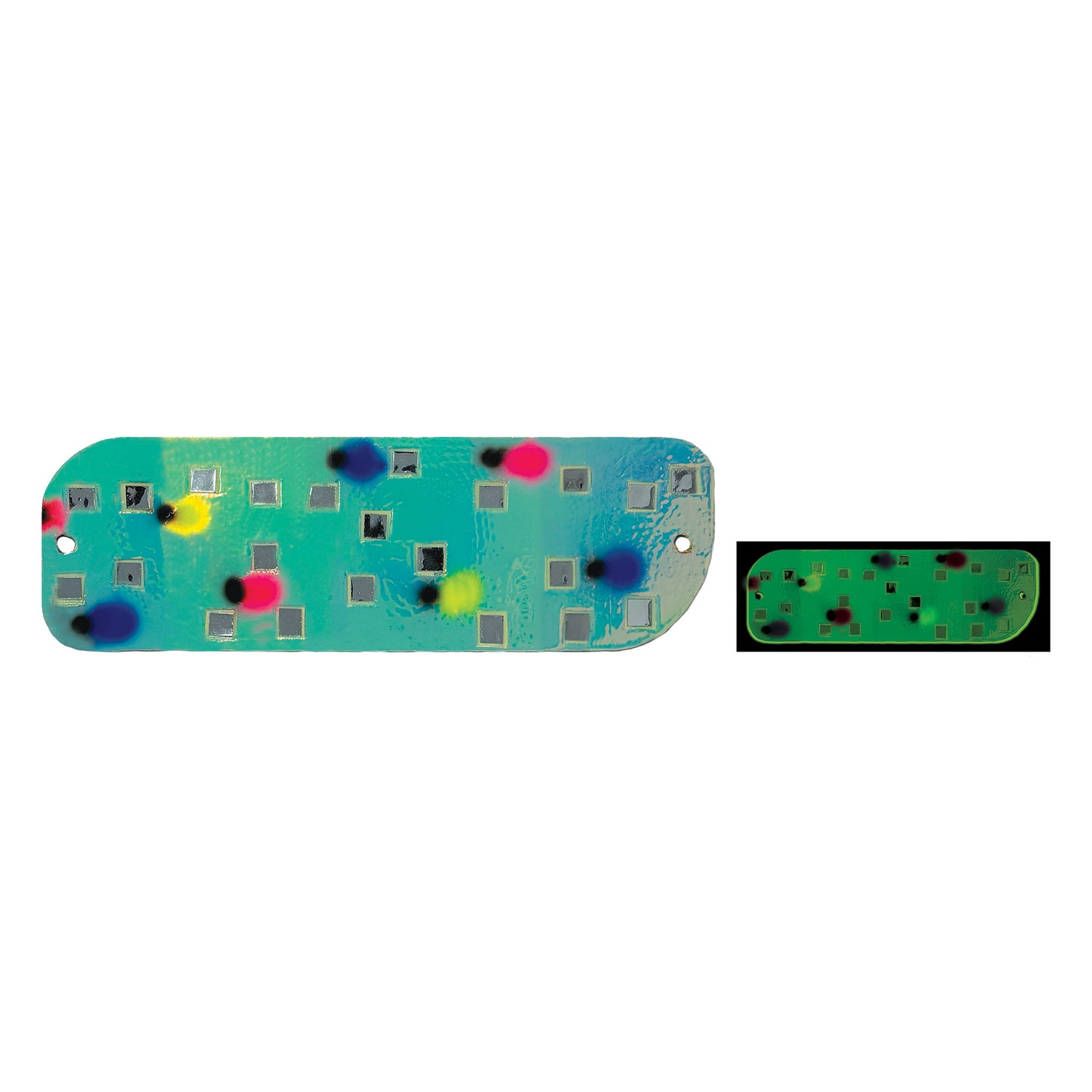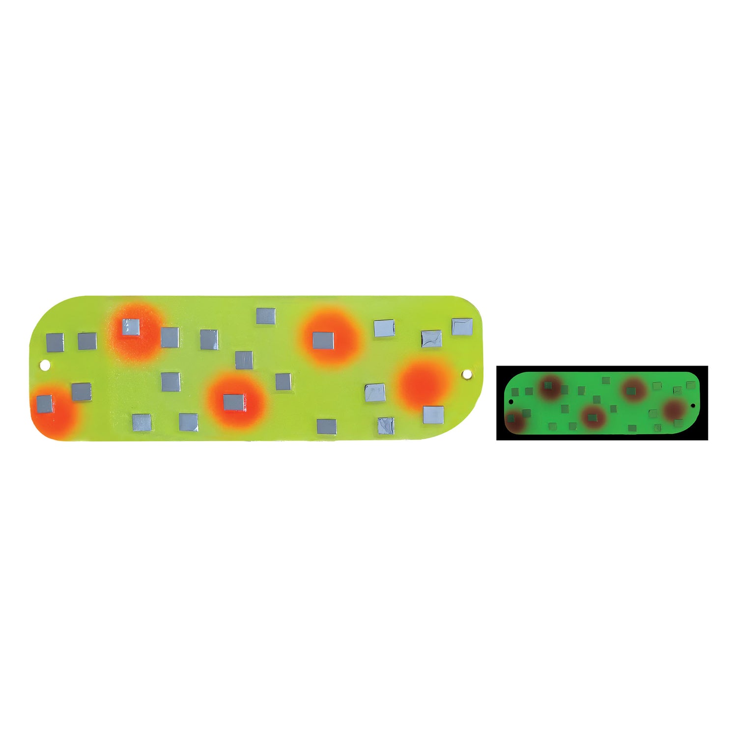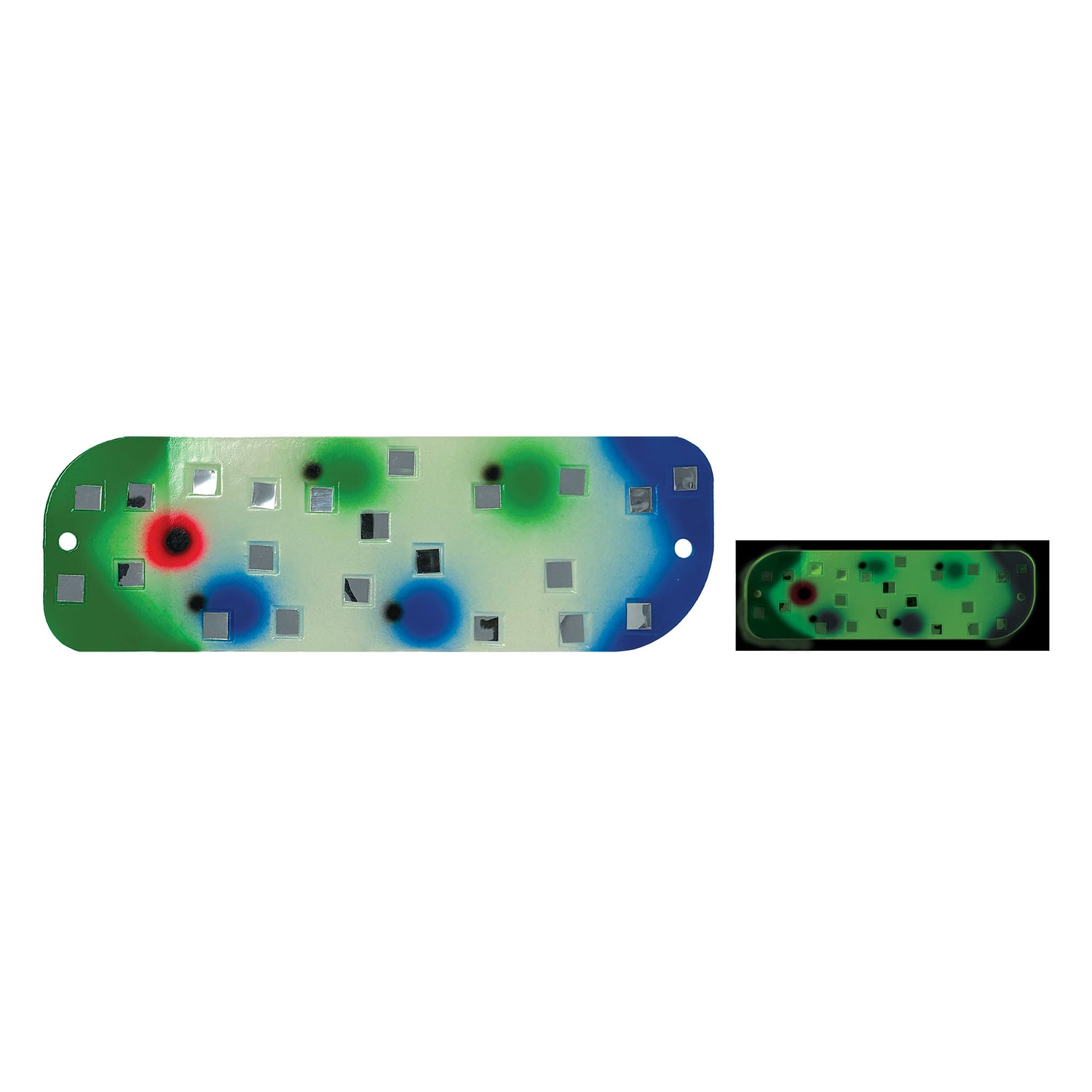 Designed to offer perfect rotating action for salmon trolling rigs at variable speeds and draw fish in from a distance with its unique embedded mirrors to create bursts of flashing light throughout the water column. Finished in the Best Glow in Fishing from Moonshine Lures, the new Mirrored Flasher brings brilliance to the game.