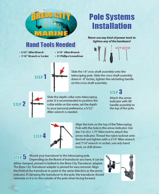 The Brew City Marine systems are heavy duty low profile versatile pole mounts made for the Garmin Live Scope, Lowrance ActiveTarget and the Humminbird Mega Live and 360.