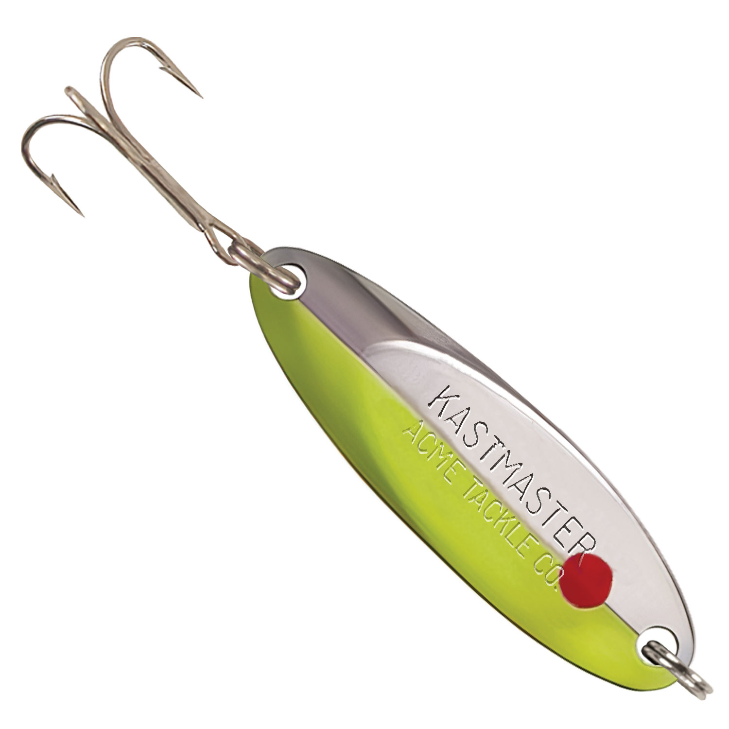 Kastmaster’s balance produces wild action without line twist! Because of its aerodynamic design, it’s the master distance caster, and catches fish from pan-sized trout to bragging-sized stripers – in fresh and salt water. The Kastmaster is precision machined. It will not break, bend or corrode and it retains its luster even after repeated exposure to salt water.