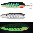 • The Moonshine Lures Trolling Spoons are some of the brightest glowing lures that you'll find on the market today! After being exposed to natural or UV light, these spoons will be glowing for hours on end. That impressive glow is perfect for drawing in the attention of predators. Moonshine Standard Trolling Spoons are also ideal for being fished during the day as they are highly UV-reflective. Ideal for catching salmon, trout, walleye, pike, muskie, and striper, these spoons are sure to please even the pickiest angler.